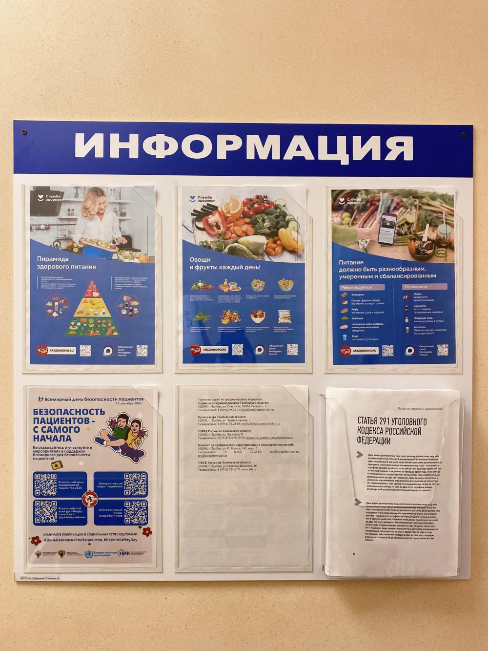 Информационная поддержка акции осуществляется через размещение тематических материалов в доступных для пациентов местах: на информационных стендах, буклетах и памятках с полезными рекомендациями.