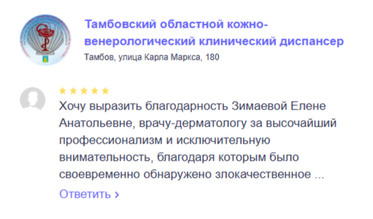 Благодарность врачу-дерматовенерологу Зимаевой Е.А.