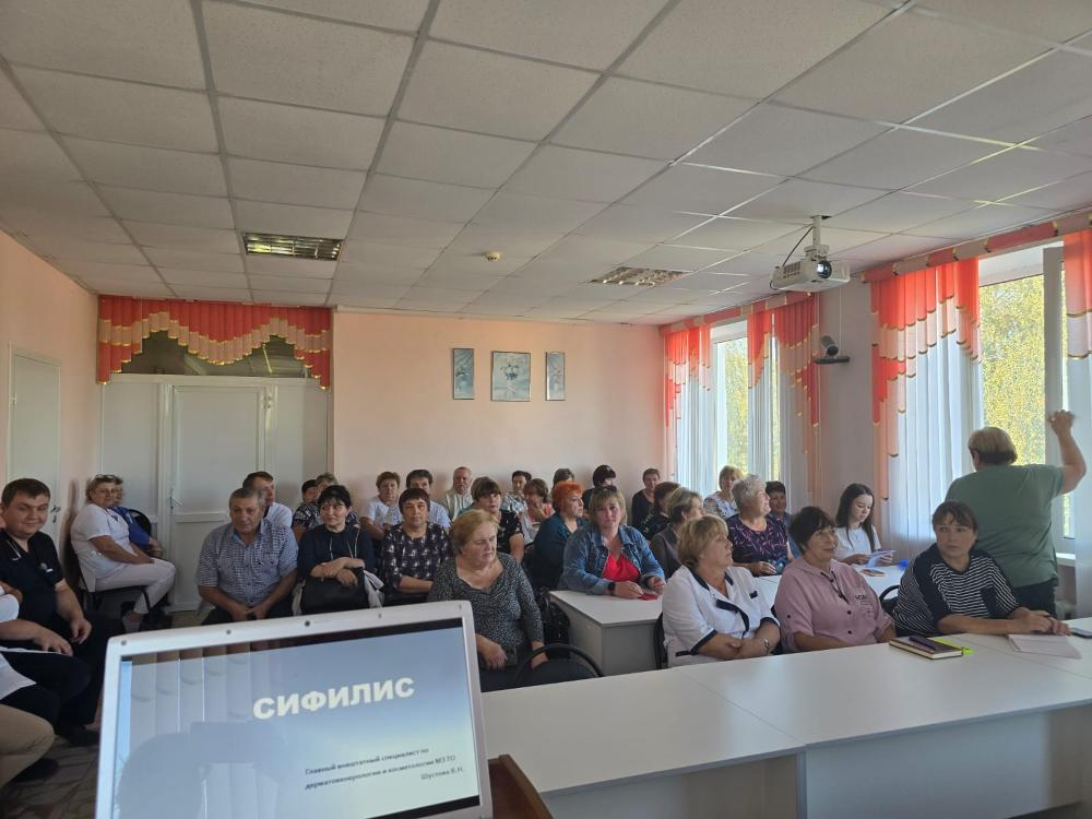 В ходе визита Вера Николаевна выступила перед врачами первичного звена и узкими специалистами и заведующими ФАП по вопросу заболеваемости сифилисом на территории района и области. А так же напомнила коллегам о признаках и симптомах данного заболевания на представленной презентации. Попросила коллег усилить настороженность в отношении этого коварного недуга. Заболеваемость данным видом инфекции складывается на территории области неблагополучно. При низких статистических показателях высока доля поздних, скрытых, атипичных форм. Это значит, что сифилис выявляется уже на сроках развития тяжелой органной патологии, ведущей к неизбежной инвалидизации пациента. Кожно-венерологический диспансер готов оказать врачам любой специальности всестороннюю помощь в диагностике сифилиса, в том числе и путем проведения телемедицинских консультаций.