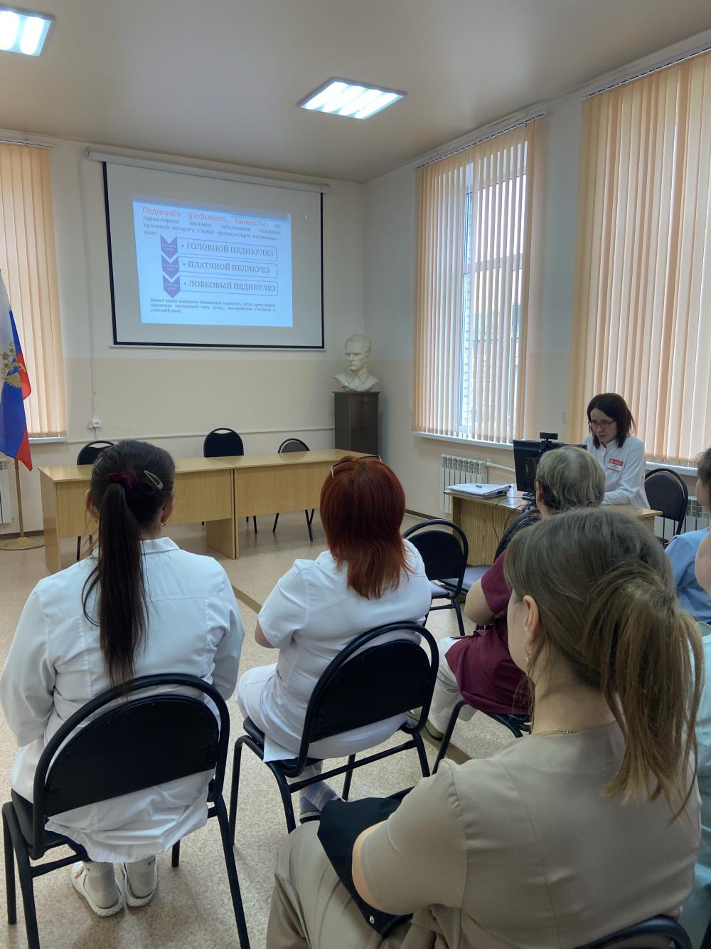 На сестринской конференции, состоявшейся в ГБУЗ «Моршанская ЦРБ», одним из докладчиков выступил врач-дерматовенеролог Моршанского филиала ГБУЗ «Тамбовский областной кожно-венерологический клинический диспансер» Лапина Т.В. с докладом на тему: «Педикулез».