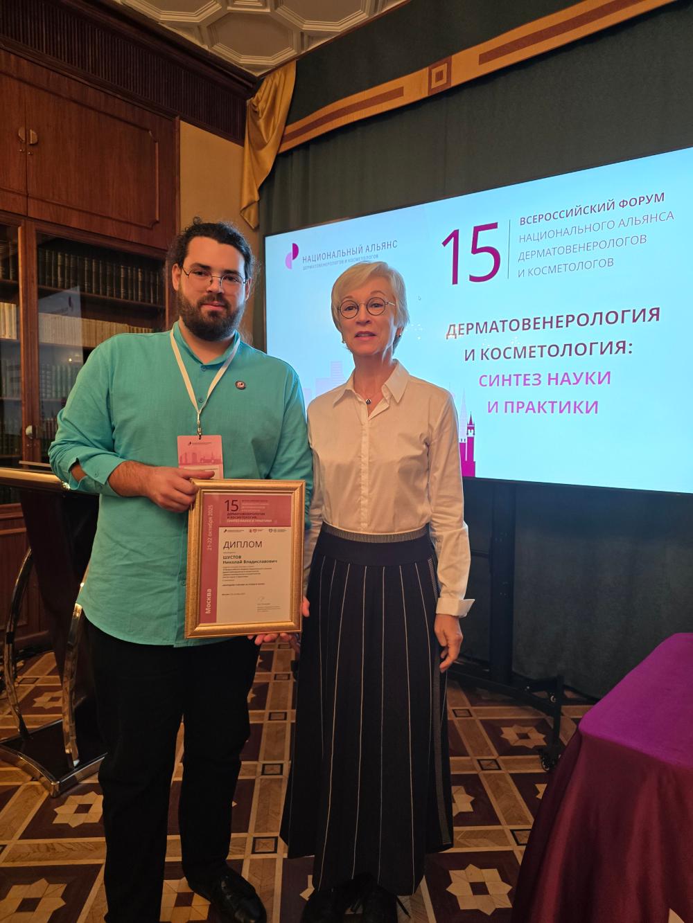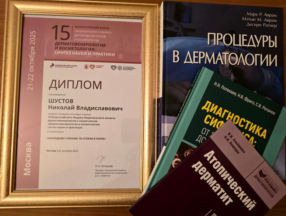 Сотрудники диспансера и коллеги сердечно поздравляют Николая Владиславовича и его научных руководителей с победой в таком престижном и значимом конкурсе молодых ученых по профилю «дерматовенерология и косметология» и желают дальнейших исследований и достижений в профессиональной и научной деятельности.