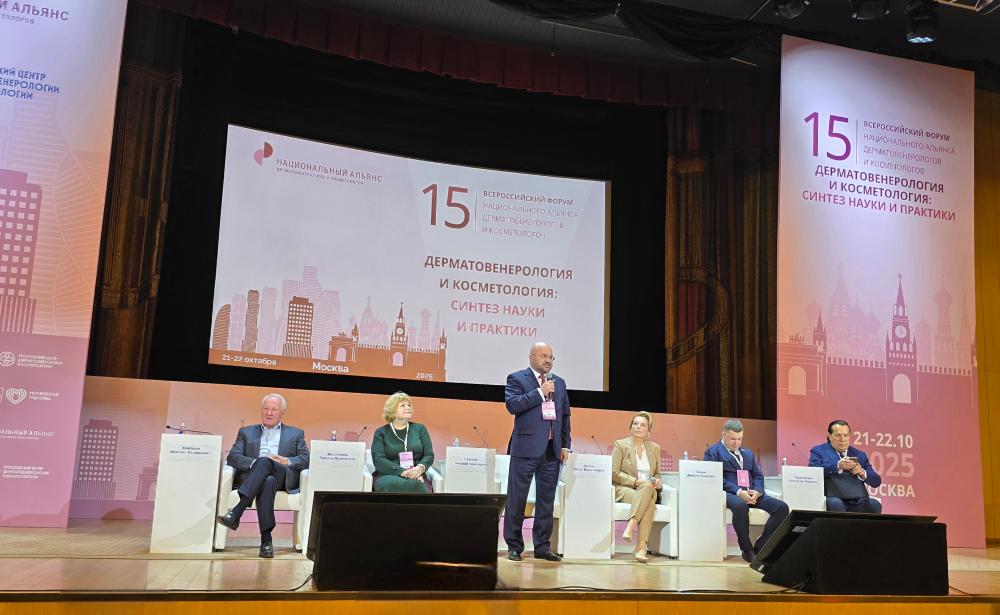 21 октября 2025 года в Москве начал свою работу 15 Всероссийский Форум НАДК «Дерматовенерология и косметология: синтез науки и практики». Форум - это федеральная площадка для взаимодействия специалистов, ученых, общественных деятелей, организаторов здравоохранения, педагогов.