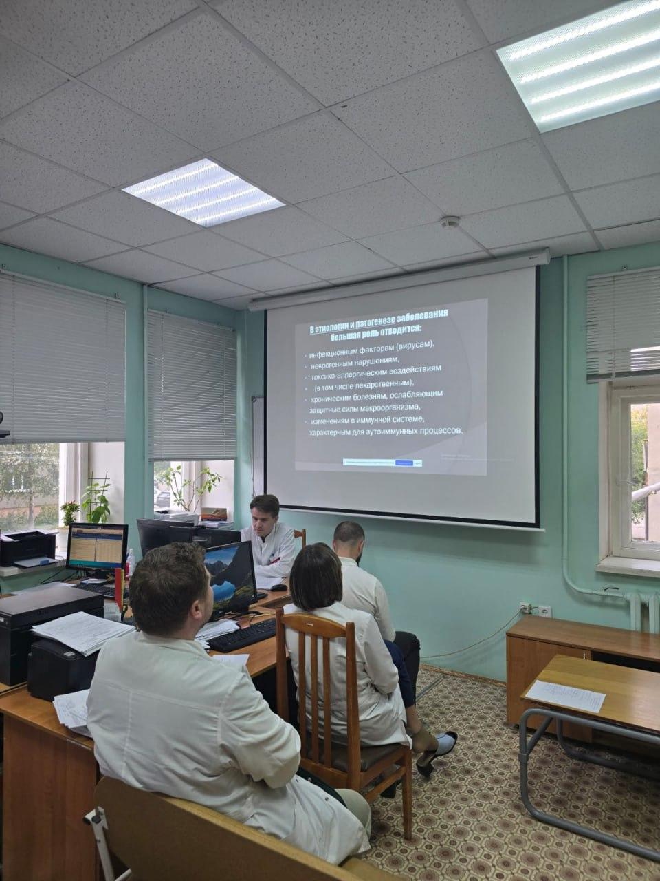 24 сентября 2025 года в ГБУЗ «Тамбовский областной кожно-венерологический клинический диспансер» состоялось восьмое в текущем году заседание областного общества врачей-дерматовенерологов и косметологов в режиме веб-конференции с профильными специалистами учреждений здравоохранения Тамбовской области.