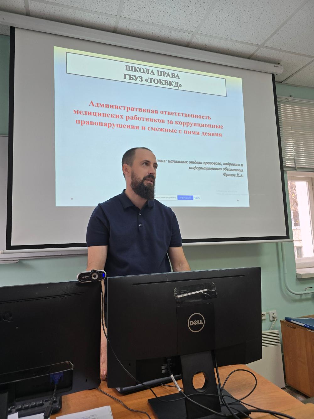 Начальник отдела правового, кадрового и информационного обеспечения Фролов К.А. ознакомил медицинских работников с административной ответственностью за коррупционные правонарушения и смежные с ними деяниями, которые подрывают доверие пациентов к системе, искажают принципы справедливого доступа к медицинской помощи и создают благоприятную почву для злоупотреблений.