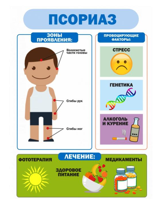 Спровоцировать развитие псориаза могут психические травмы, перенесенное инфекционное заболевание, травмы кожи, некоторые медицинские препараты, гормональные изменения в организме, аллергия, алкогольная интоксикация или же просто перемена климата.