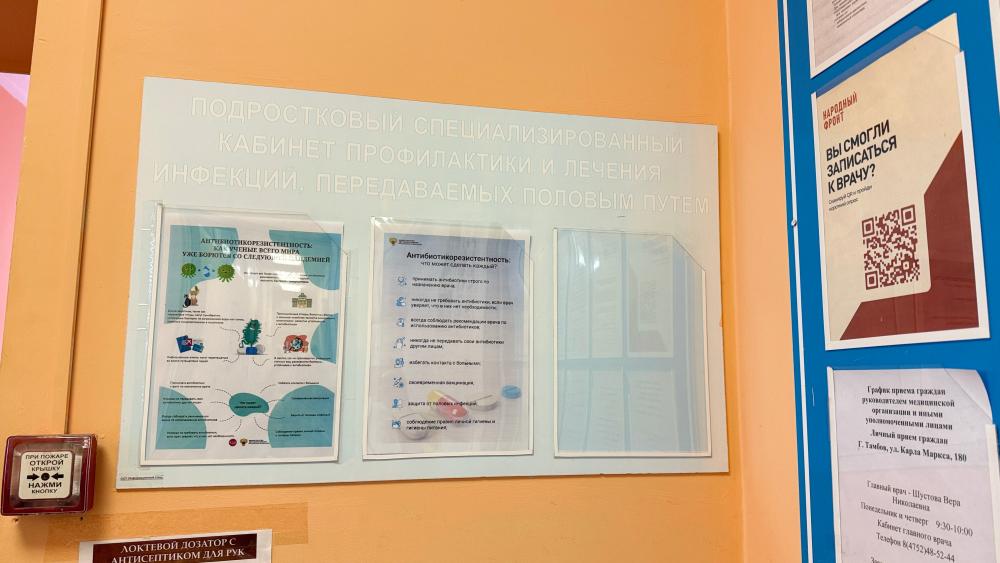 В холлах учреждения размещены наглядные материалы о механизмах развития резистентности, памятки о правилах приёма антибиотиков, списки наиболее распространённых инфекций, требующих антибактериальной терапии, и тех, где антибиотики бесполезны (например, при ОРВИ), а также контакты горячих линий и ресурсов для консультаций.