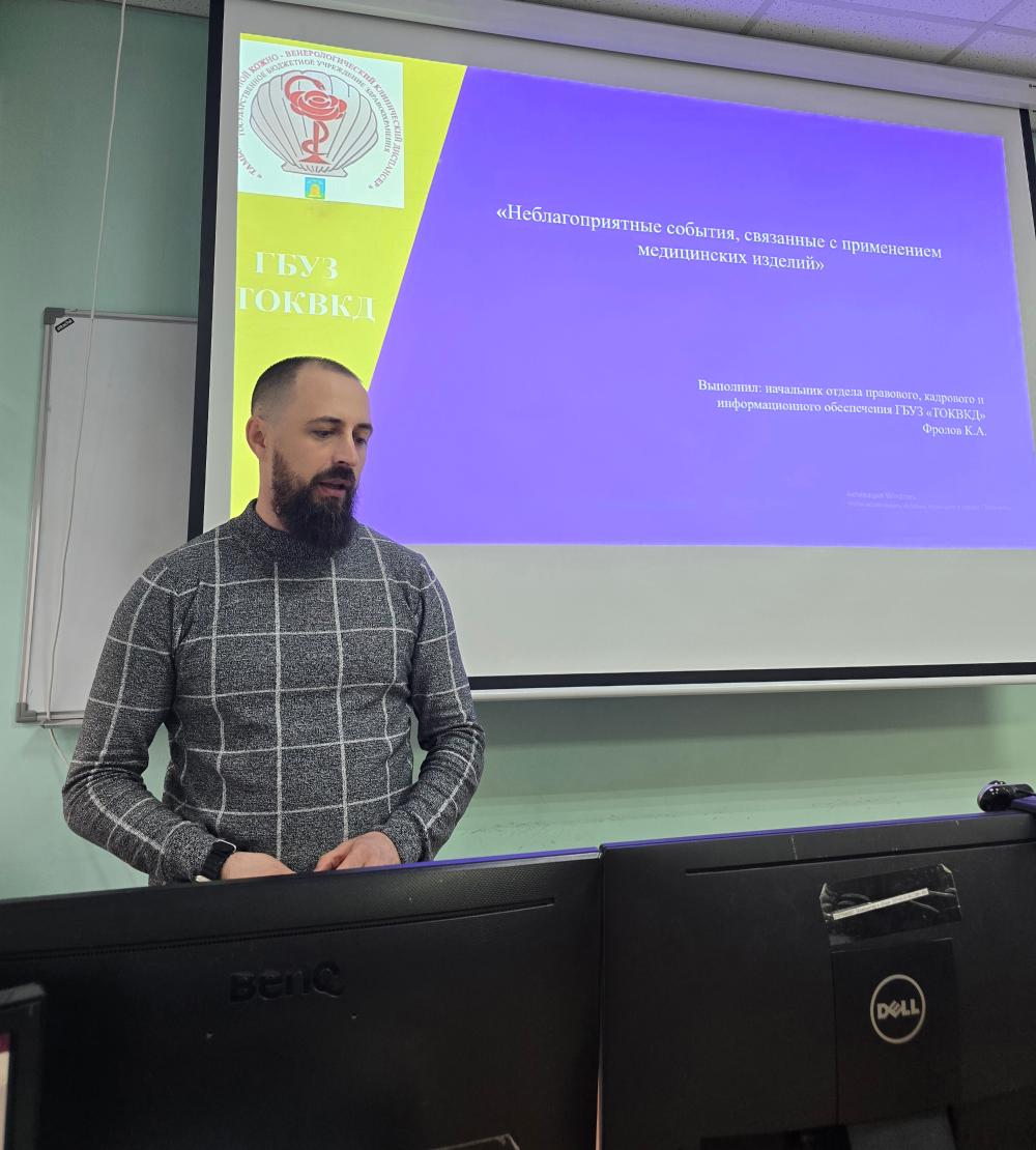 Начальник отдела правового, кадрового и информационного обеспечения Фролов К.А. ознакомил медицинских работников с мониторингом безопасности медицинских изделий и лекарственных препаратов для выявления и предотвращения неблагоприятных событий.