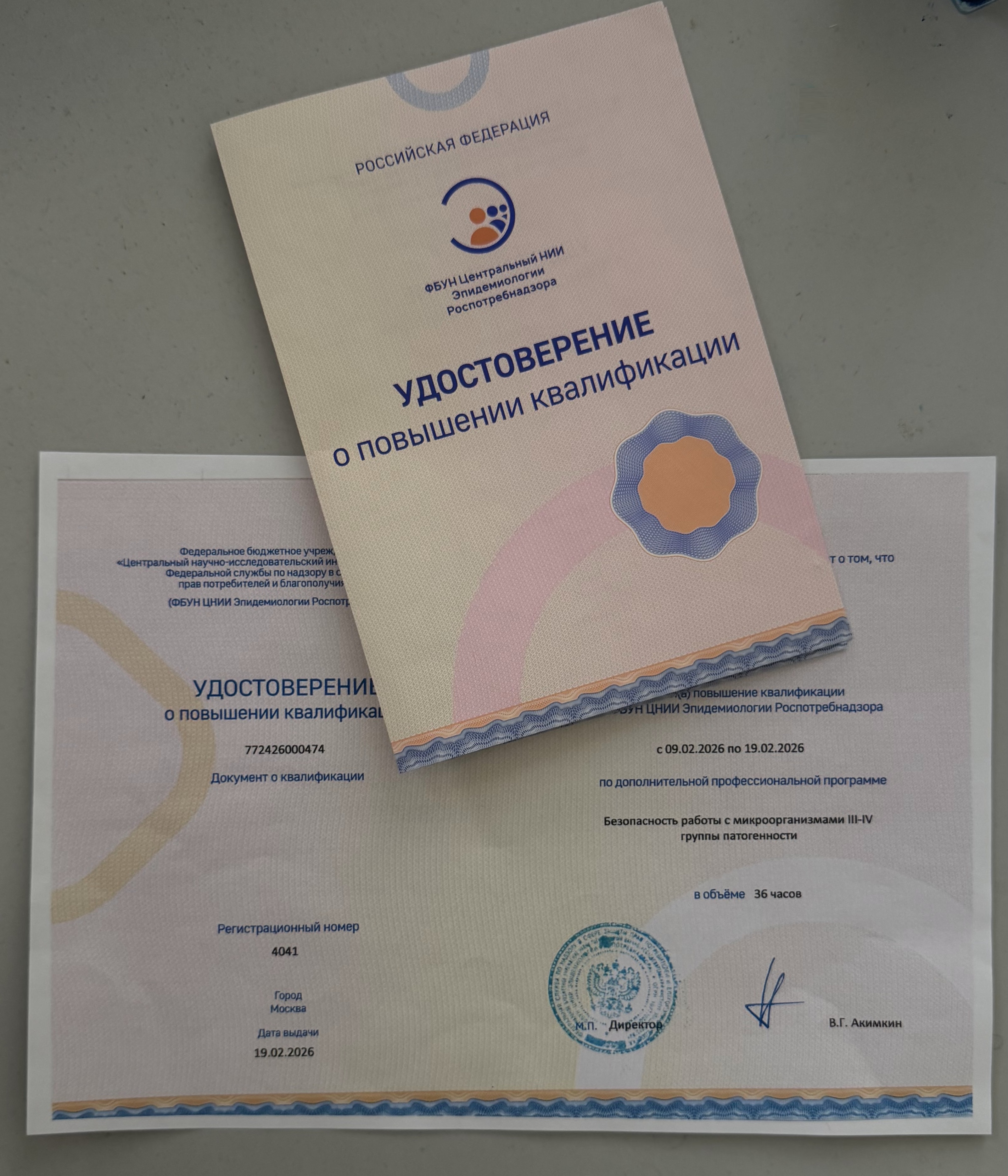 В феврале 2026 года сотрудниками клинико-диагностической лаборатории были пройдены и успешно завершены курсы повышения квалификации по дополнительной профессиональной программе «Безопасность работы с микроорганизмами 3-4 групп патогенности».