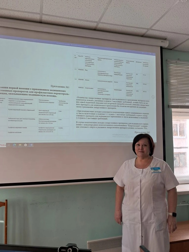 Завершила серию выступлений Кудрявцева Валентина Васильевна, медицинская сестра процедурного кабинета стационарного отделения. Она представила доклад на тему «Техника выполнения внутримышечных инъекций». Валентина Васильевна детально разобрала анатомические ориентиры для безопасных инъекций, подготовку шприца и лекарственного средства и пошаговую технику выполнения манипуляции.