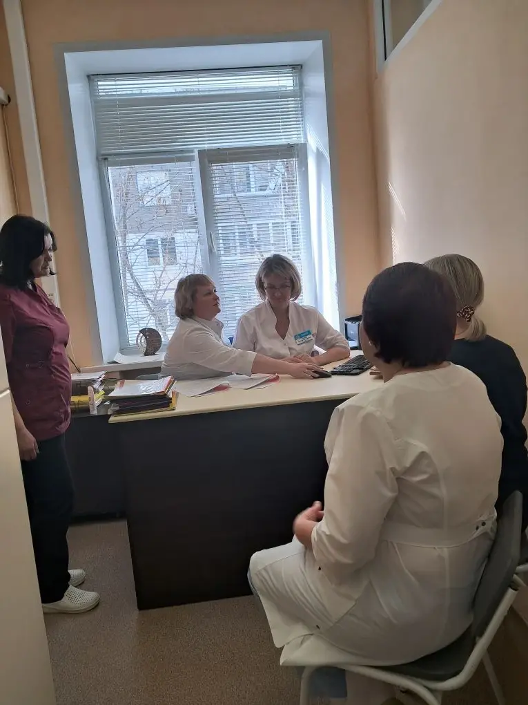 Занятия провела старшая медицинская сестра стационарного отделения – Голдунова Ольга Анатольевна. К обучению были привлечены медицинские сёстры, уборщики и лаборанты.
