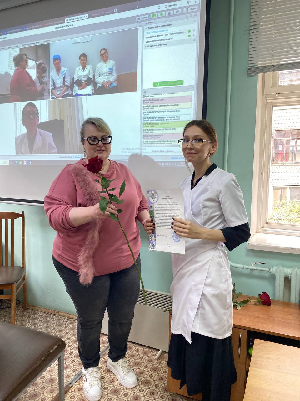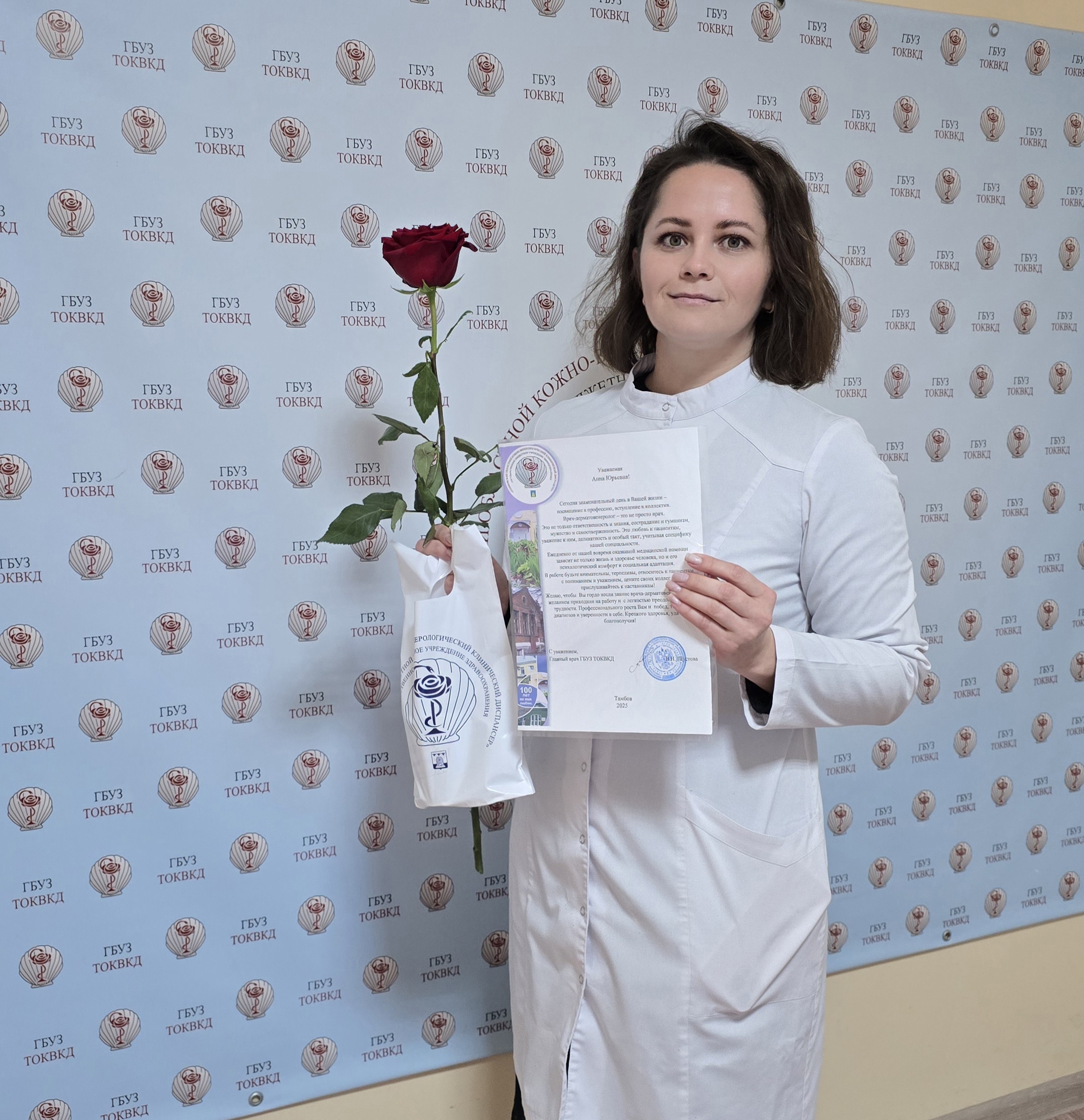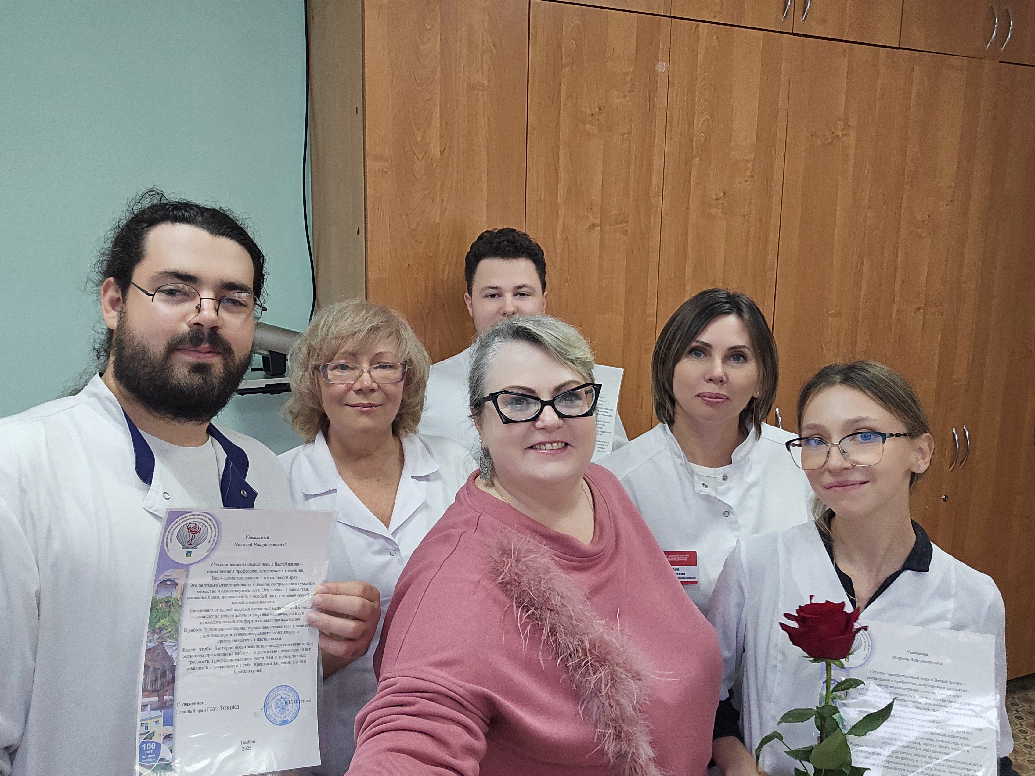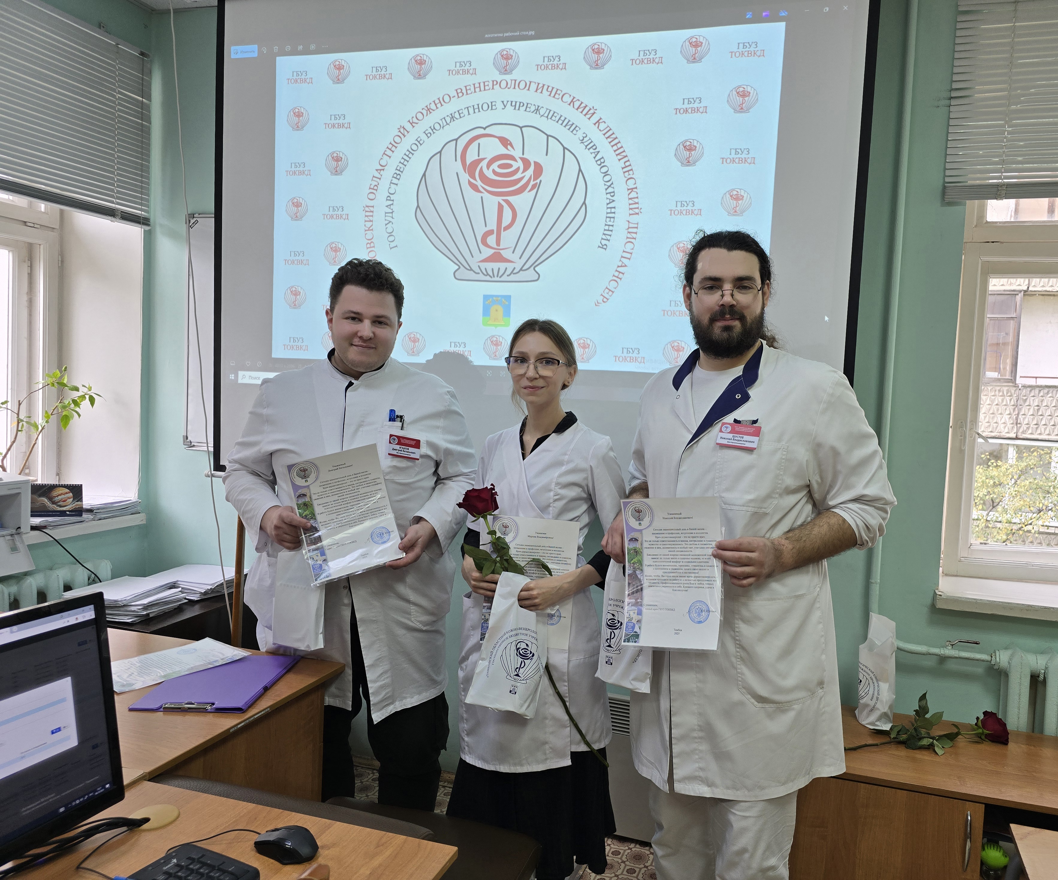 Тамбовский кожно-венерологический диспансер богат традициями. Сегодня, 6 октября, в Международный день врача в ГБУЗ ТОКВКД чествовали молодых врачей, которые пришли работать в диспансер в 2025 году. Данная традиция зародилась в прошлом голу по инициативе главного врача. «В этом году в наши ряды мы приняли сразу четырех врачей! И пусть это станет продолжением глобальных кадровых перемен», - отметила Вера Николаевна. «Уважаемые наши молодые коллеги! Сегодня знаменательный день в Вашей жизни – посвящение в профессию, вступление в коллектив. Врач-дерматовенеролог – это не просто врач. Это не только ответственность и знания, сострадание и гуманизм, мужество и самоотверженность. Это любовь к пациентам, уважение к ним, деликатность и особый такт, учитывая специфику нашей специальности. Ежедневно от нашей вовремя оказанной медицинской помощи зависит не только жизнь и здоровье человека, но и его психологический комфорт и социальная адаптация. В работе будьте внимательны, терпеливы, относитесь к пациентам с пониманием и уважением, цените своих коллег и прислушивайтесь к наставникам! Желаю, чтобы Вы гордо несли звание врача-дерматовенеролога, с желанием приходили на работу и с легкостью преодолевать все трудности. Профессионального роста Вам и побед, точных диагнозов и уверенности в себе. Крепкого здоровья, удачи и благополучия!» - напутственно прозвучали слова главного врача.