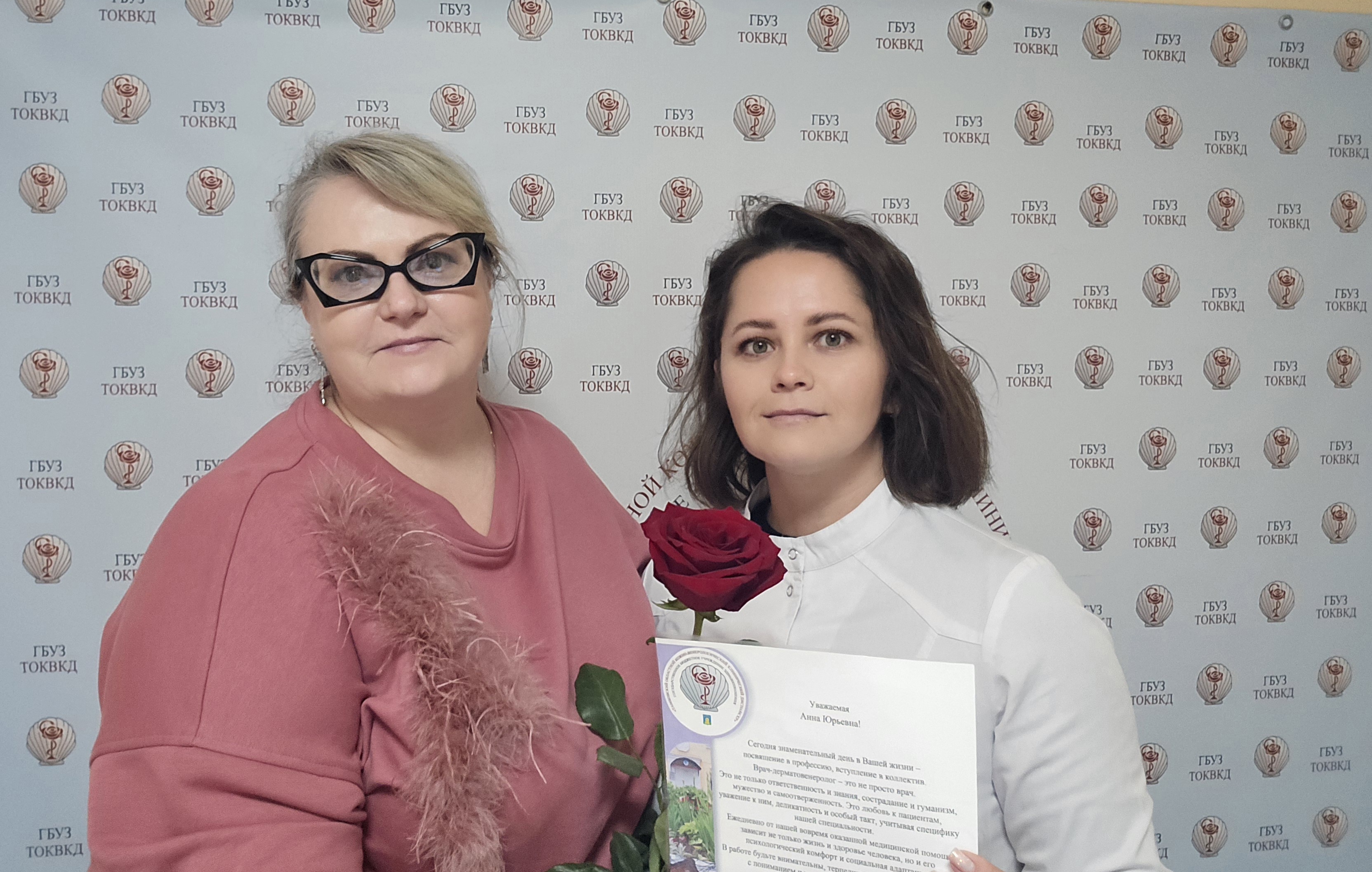 В этом году празднование Международного дня врача в стенах ГБУЗ «ТОКВКД» прошло особенно торжественно. Главный врач диспансера – Шустова Вера Николаевна обратилась к коллегам с тёплыми словами благодарности за их самоотверженный труд и преданность профессии. Слова признательности прозвучали от сотрудников административно-хозяйственной службы, медицинских сестер и заведующих филиалами.