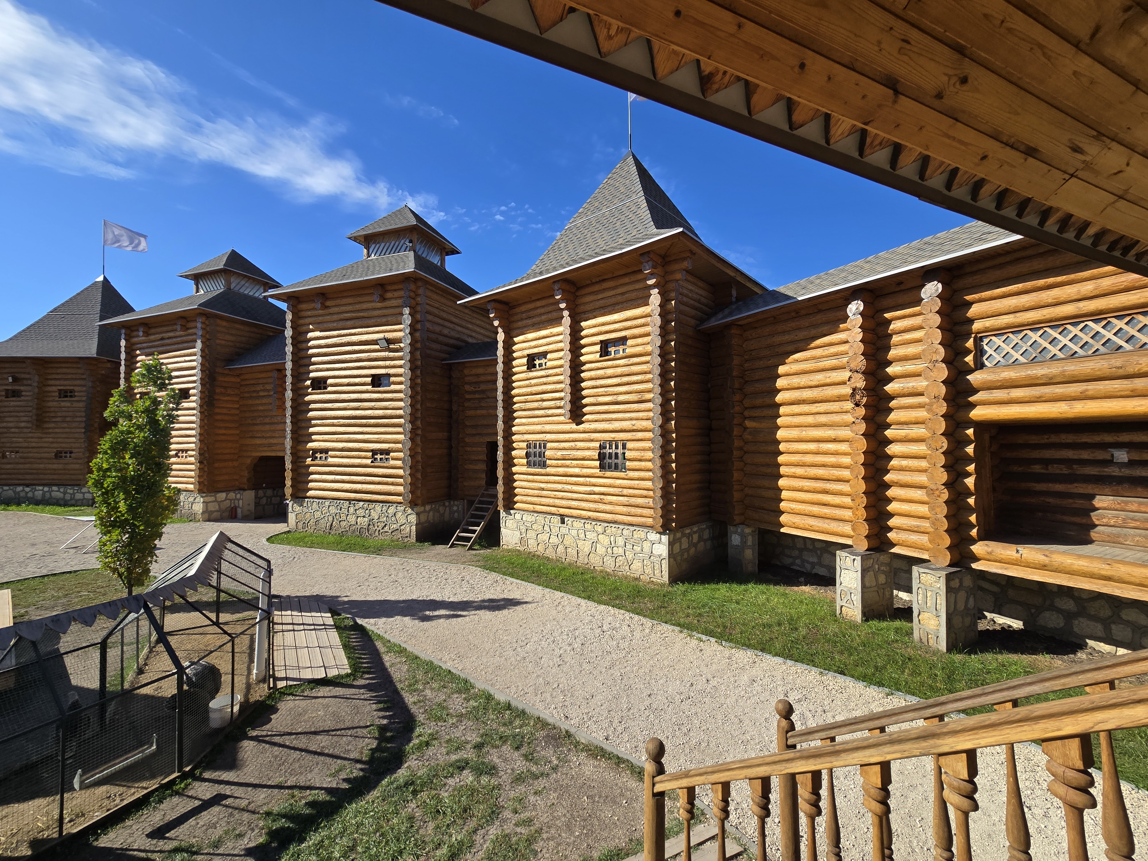 Парк построен на кургане с остатками скифского городища, на котором возвели деревянную крепость - подобие древней крепости IV–Vвеков. Это одна из главных точек притяжения в парке. Масштаб сооружения впечатляет: по периметру мощных стен высятся девять башен, а внутри, на территории 100 на 100 метров расположен музей романовской игрушки.