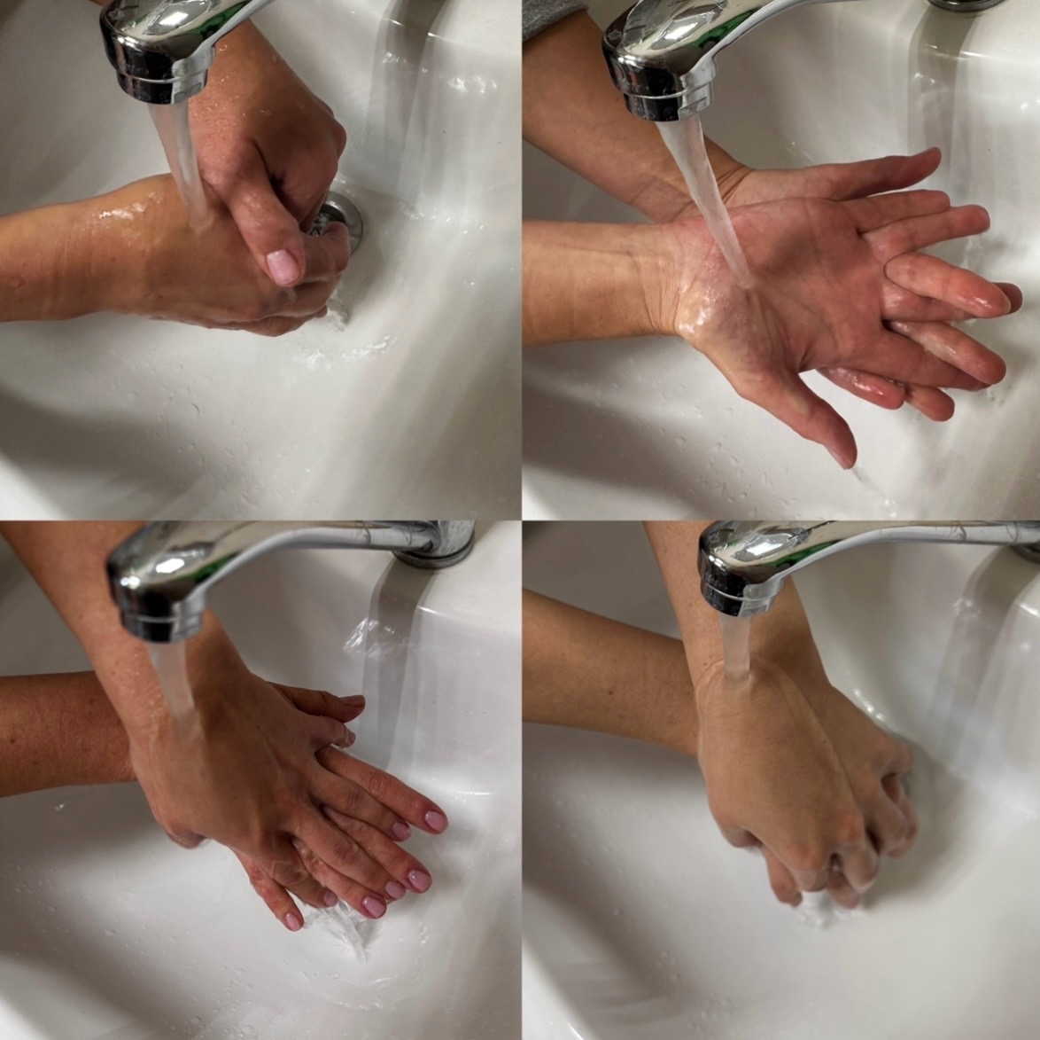- тщательно намылить руки, включая тыльные стороны ладоней, межпальцевые промежутки и ногти