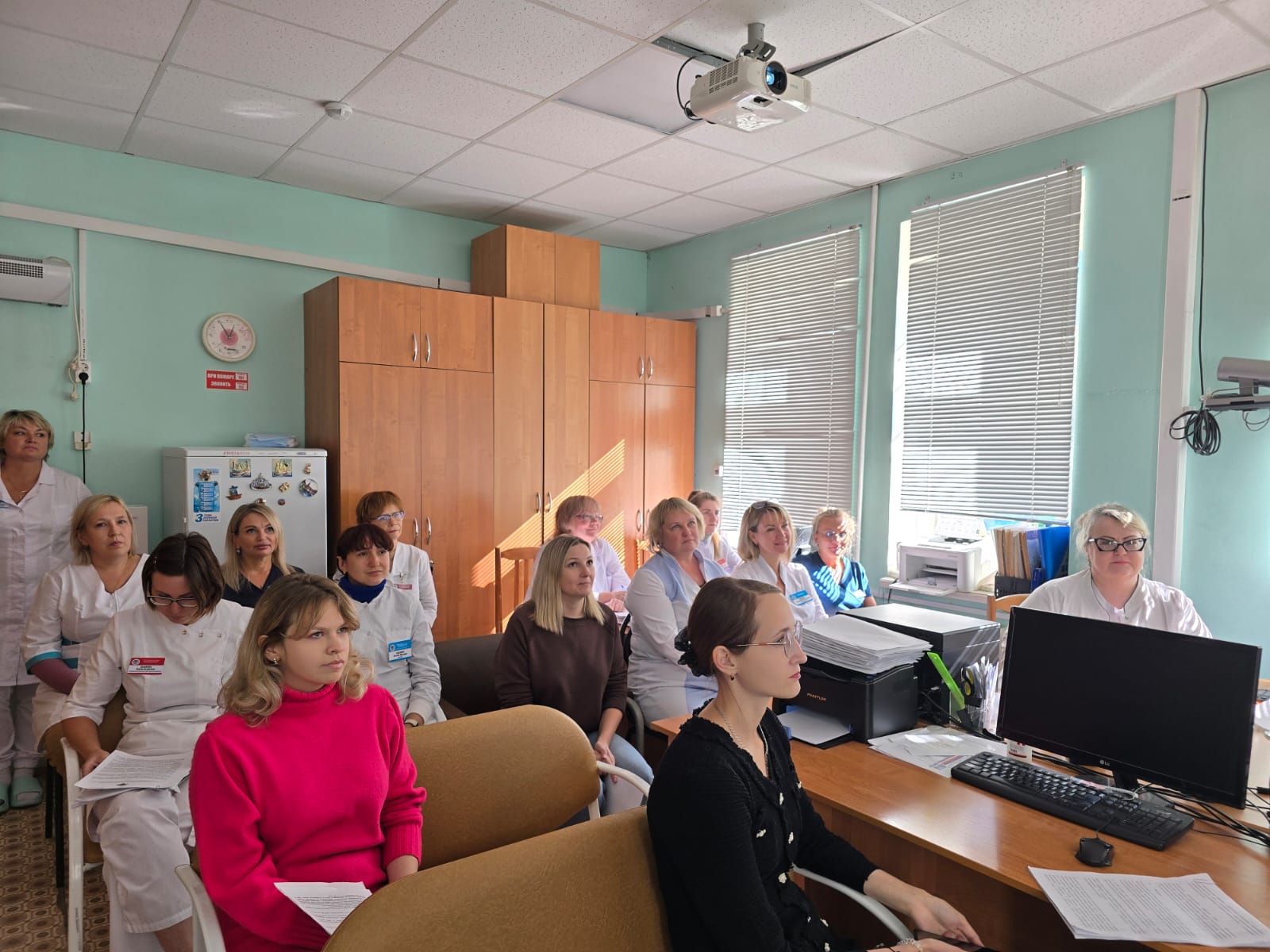 Далее главный врач диспансера В.Н. Шустова напомнила врачам о повышении настороженности в отношении данного заболевания, так как с геморрагической сыпью пациенты могут первыми на прием прийти именно к врачам-дерматовенерологам и рассказала о маршрутизации таких больных.