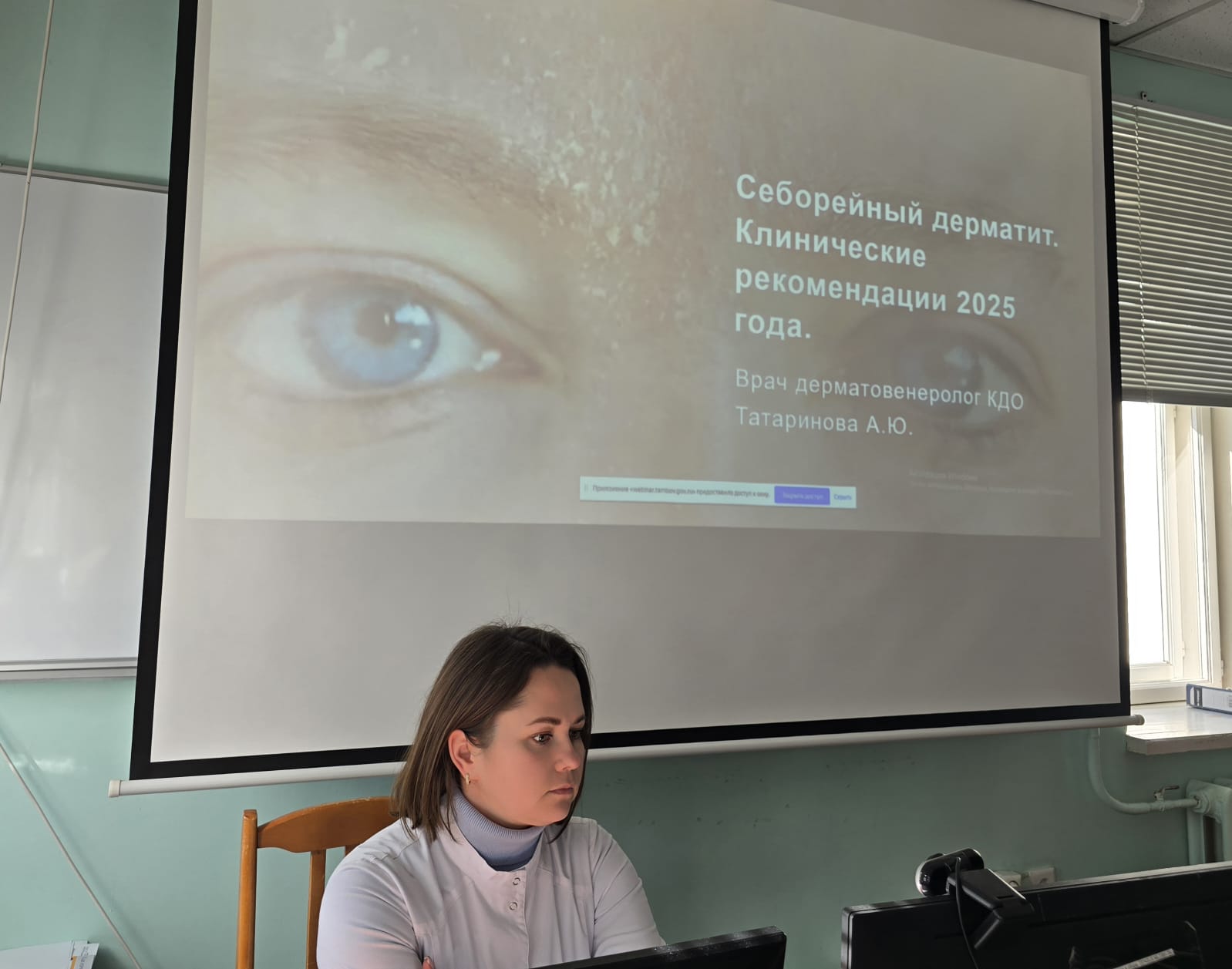 Основной повесткой дня было изучение клинических рекомендаций по профилю «дерматвенерология», которые утверждены, размещены в соответствующем рубрикаторе в сентябре и рекомендованы к применению. Это клинические рекомендации «Себорейный дерматит», «Эритразма» и «Разноцветный лишай». Докладчиками выступили врачи консультативно-диагностического отделения Игнатов Д.В., Татаринова А.Ю. и Юдакова М.В. Доктора подробно остановились на диагностике и лечении данных заболеваний согласно новым клиническим рекомендациям.