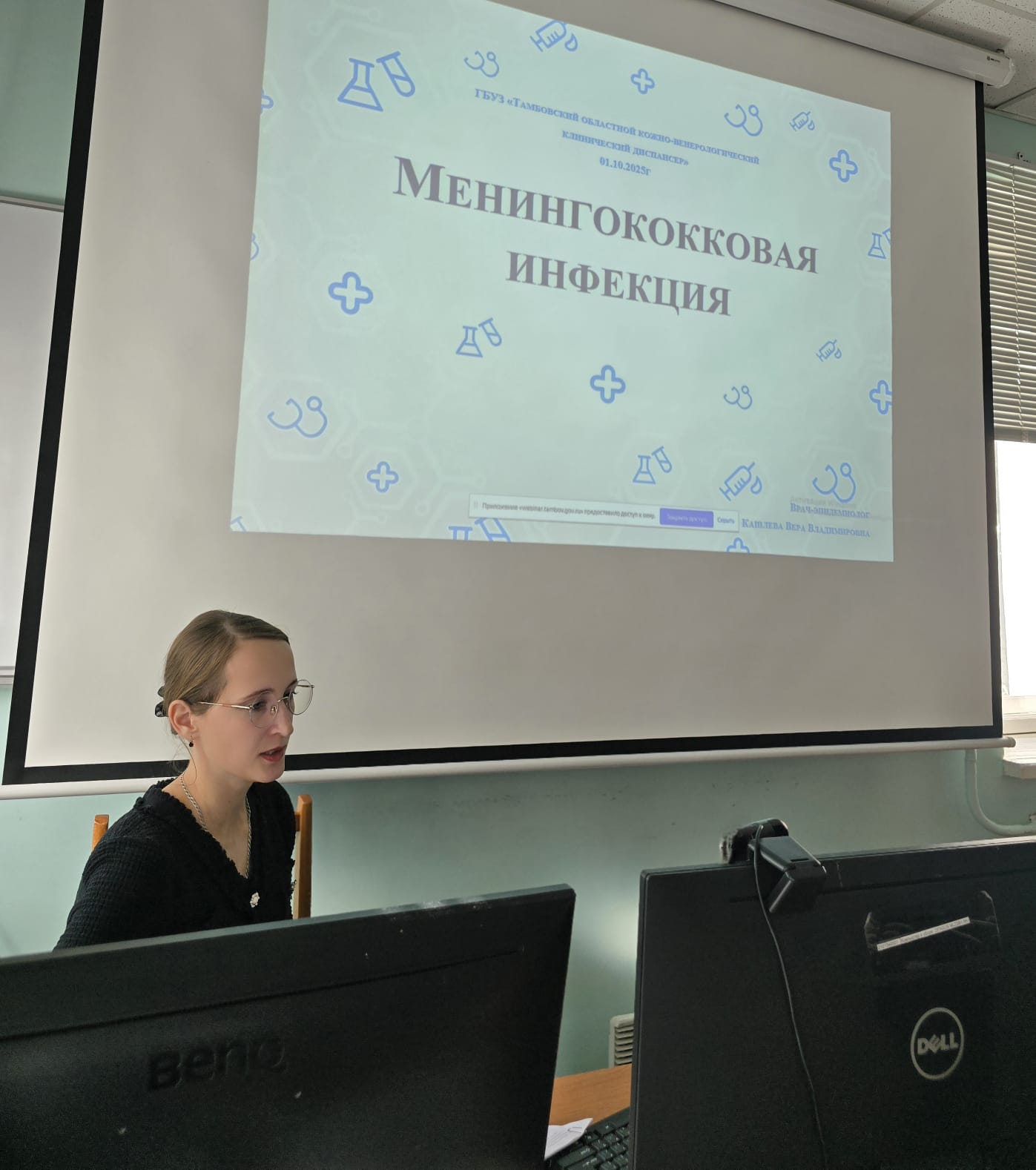 Так же был рассмотрен вопрос «Менингококковая инфекция» в рамках исполнения письма МЗ ТО в связи с ростом заболеваемости данной инфекцией. Врач-эпидемиолог диспансера Кашлева Вера Владимировна обозначила актуальность данной темы, подробно остановилась на этиопатогенезе, клинических проявлениях, методах диагностики и проведения дифференциальной диагностики, а так же экстренной, специфической и неспецифической профилактики, проведении противоэпидемических мероприятий в очаге.