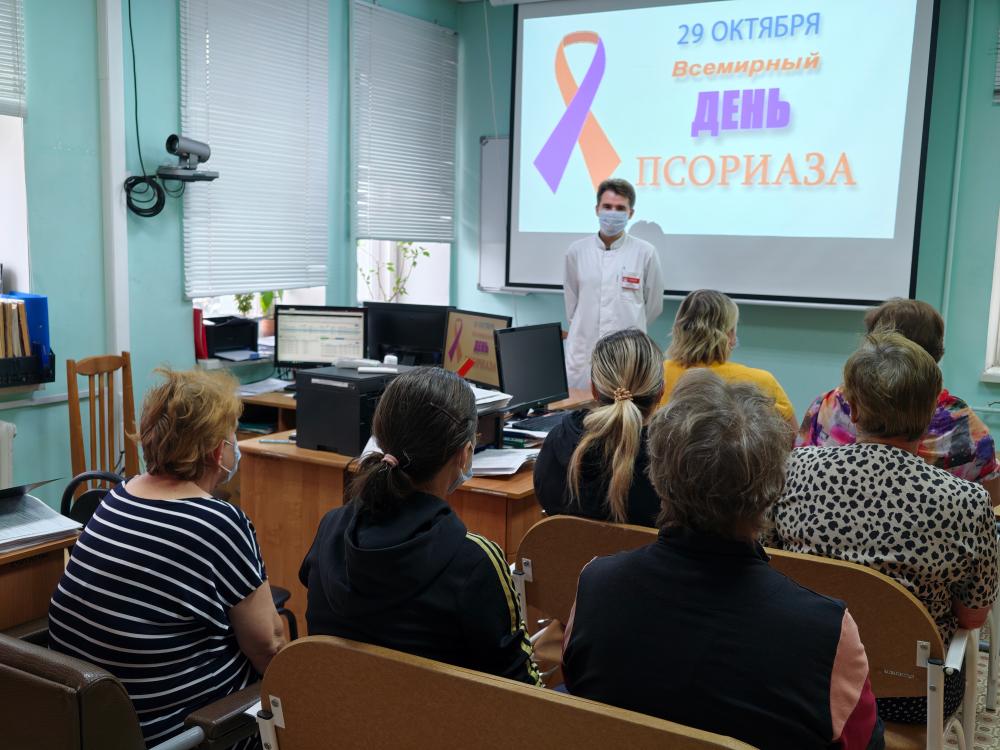29 октября 2025 года, в рамках Всемирного дня борьбы с псориазом, в ГБУЗ «ТОКВКД» состоялась образовательная акция – «Школа псориаза». Мероприятие было нацелено на повышение осведомлённости пациентов и медицинских работников о природе заболевания, современных методах терапии и стратегиях самоконтроля.